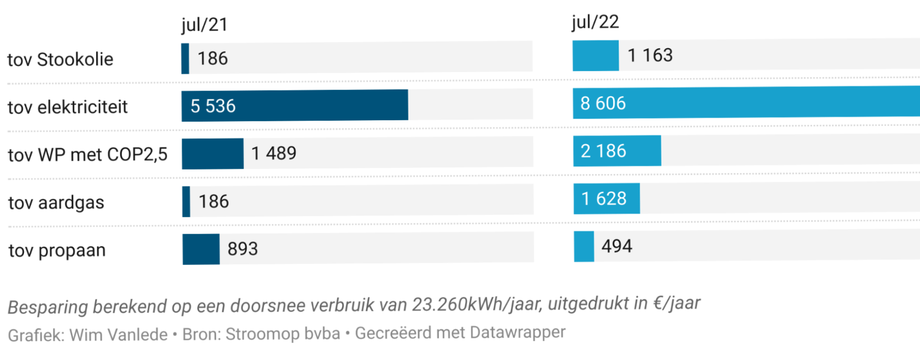 De prijs van houtpellets (9 cent per kWh) is bijna de helft goedkoper dan gas (16 cent per kWh) of stookolie (14 cent/kWh) en is 5 keer goedkoper dan elektriciteit (46 cent per kWh). Het besparingspotentieel met pellets is dus groter dan ooit tevoren. Onderstaande grafiek toont de besparing indien je verwarmt met pellets ten opzichte van stookolie, aardgas, elektriciteit of propaan. De grootste besparing wordt gerealiseerd bij gezinnen die elektrisch verwarmen. Een doorsneegezin met een matig geïsoleerde woning op gas die omschakelt naar pellets kan 1.628 € per jaar besparen. Ze zijn dus niet alleen een betaalbaar alternatief, maar ook een lokaal en ecologisch product.